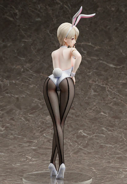 Her pale skin and uniquely silver hair owing to her half-Japanese half-Danish heritage are further emphasize with a pure white bunny suit. Alice is posed looking behind her with a sexy smile on her face. Don’t miss Alice’s impressive curves or the real net tights that give her legs a highly realistic appearance!