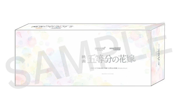 This set comes with POP UP PARADE Ichika Nakano 1.5, POP UP PARADE Nino Nakano 1.5, POP UP PARADE Miku Nakano 1.5, POP UP PARADE Yotsuba Nakano 1.5 and POP UP PARADE Itsuki Nakano 1.5 all packaged in a special box.